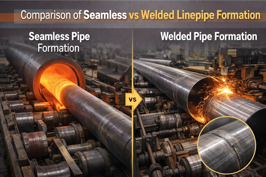 Longitudinal Submerged Arc Welding (LSAW): Steel plates are bent and welded along the length of the pipe, used for larger diameters and high-strength requirements.