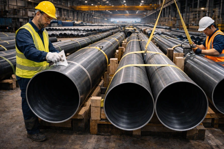 Once the pipe passes all tests and coatings, it is marked with key information such as steel grade, size, and heat number for traceability. The pipes are then packed and shipped to the project site.