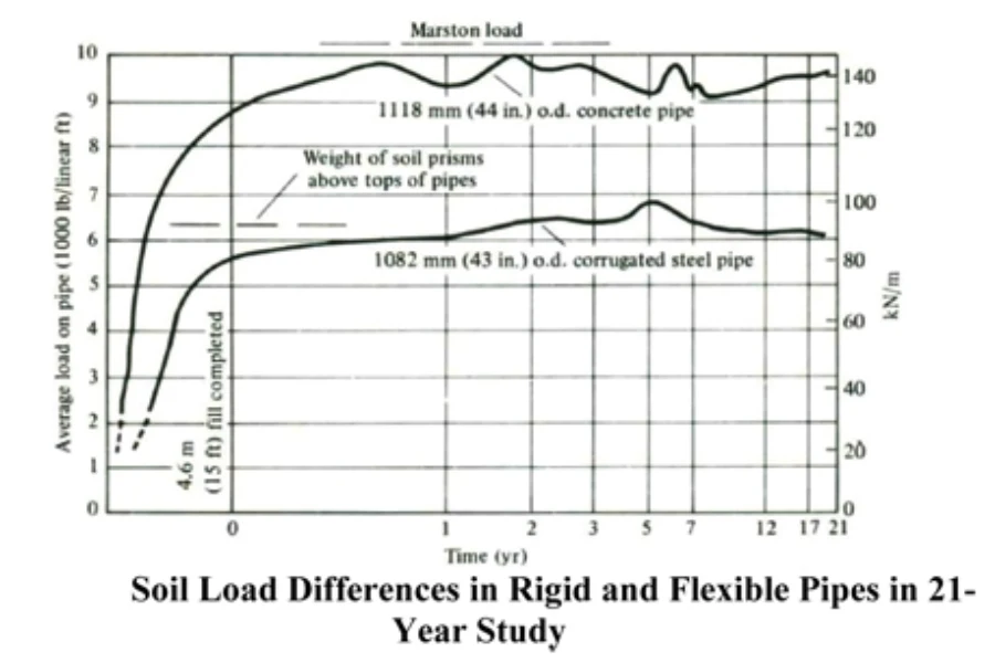 HDPE pipe allows controlled deformation and relies on surrounding soil for support.