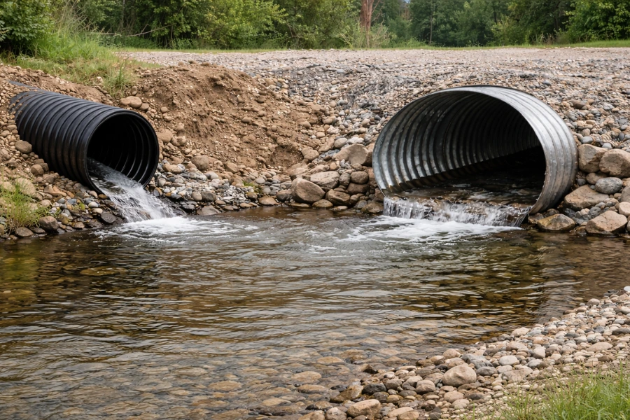 Culverts are large-diameter pipes designed to allow water to pass beneath roads, railways, and other infrastructure. These pipes are made from either HDPE or metal, depending on the required load-bearing capacity.